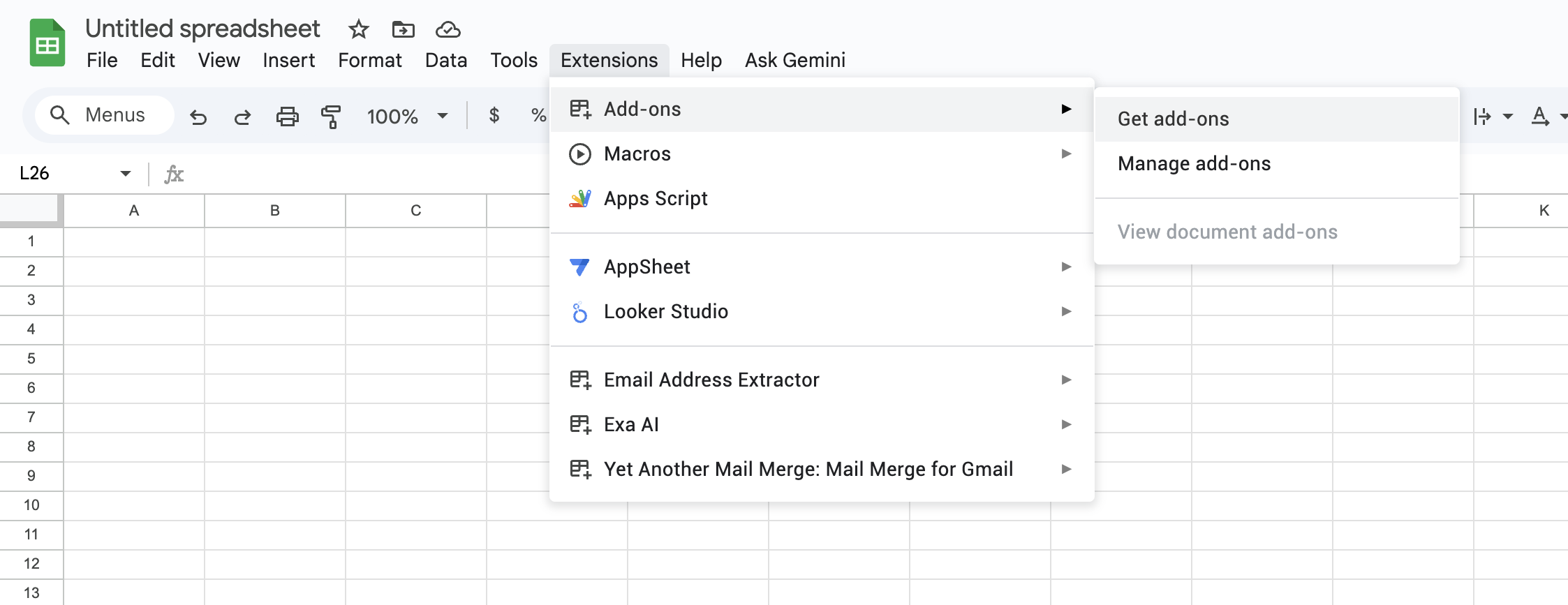 - Click Extensions → Add-ons → Get add-ons in the menu bar
